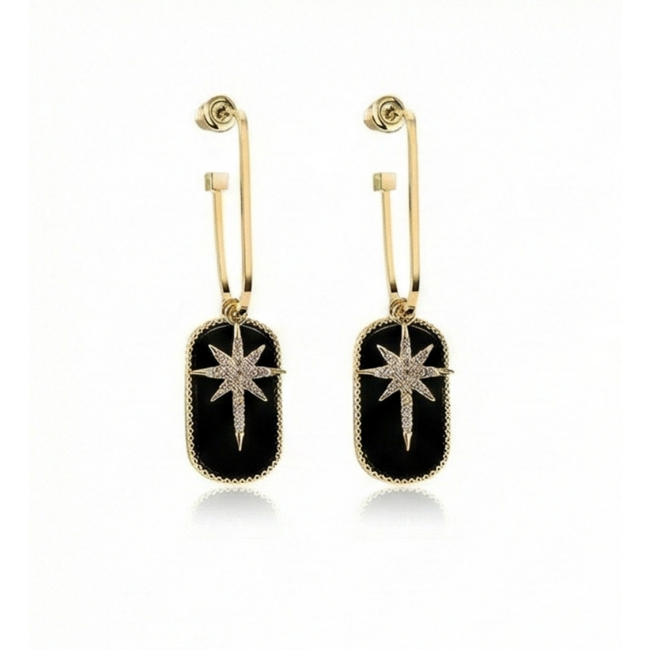 Black Enamel Star Drop Earrings
